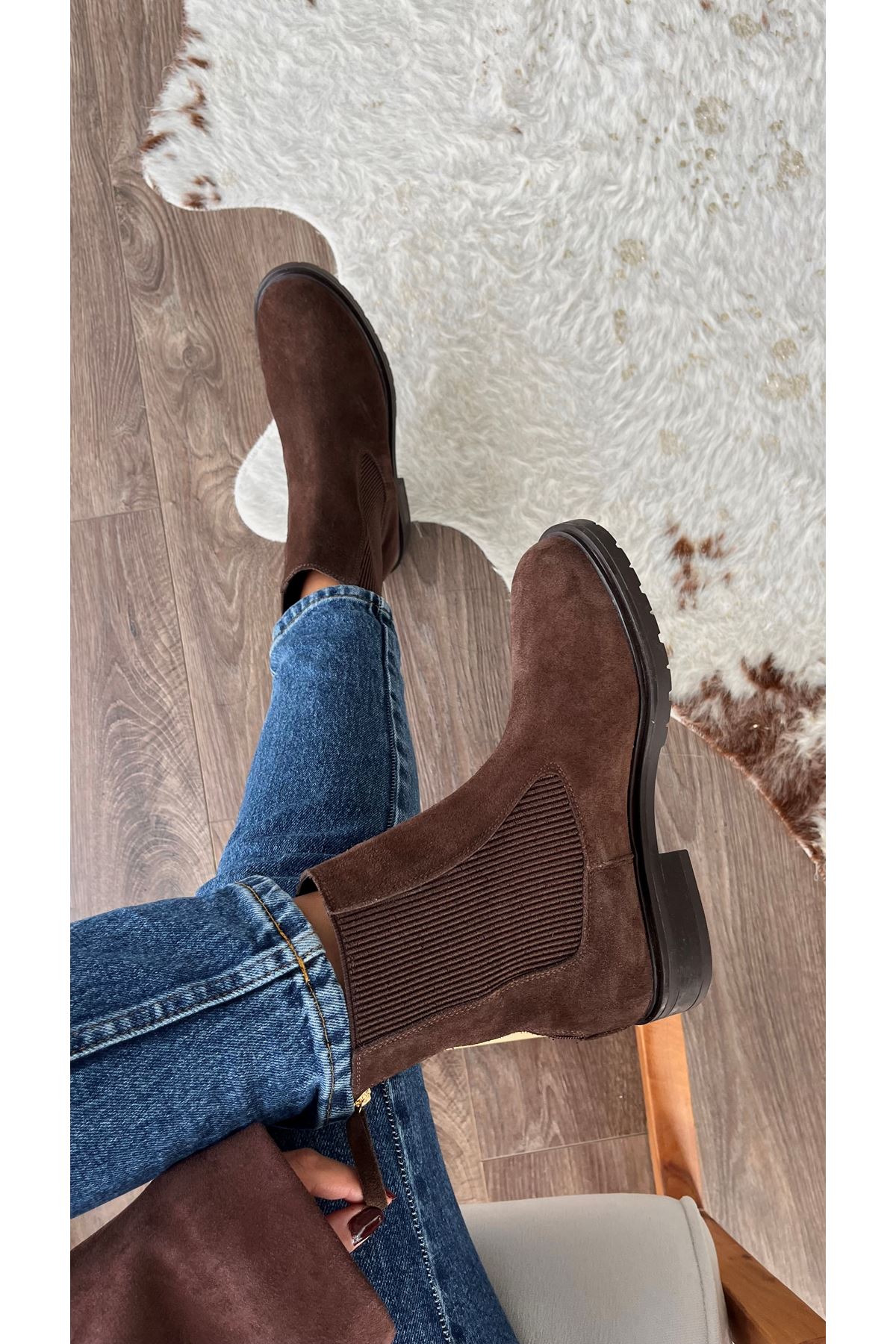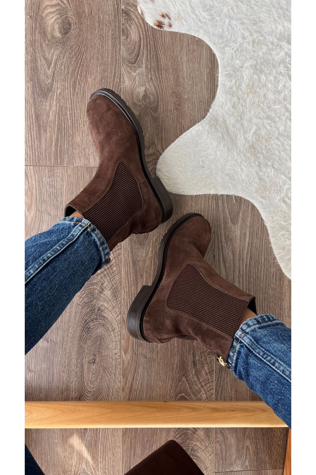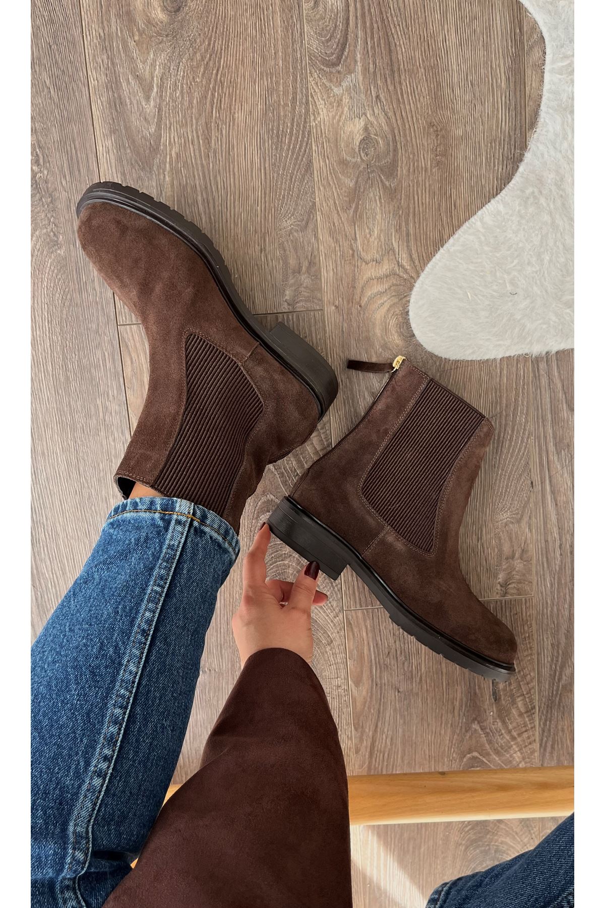 Gerçek Deri Süet Arkadan Fermuarlı Kadın Bot Kahverengi Casual