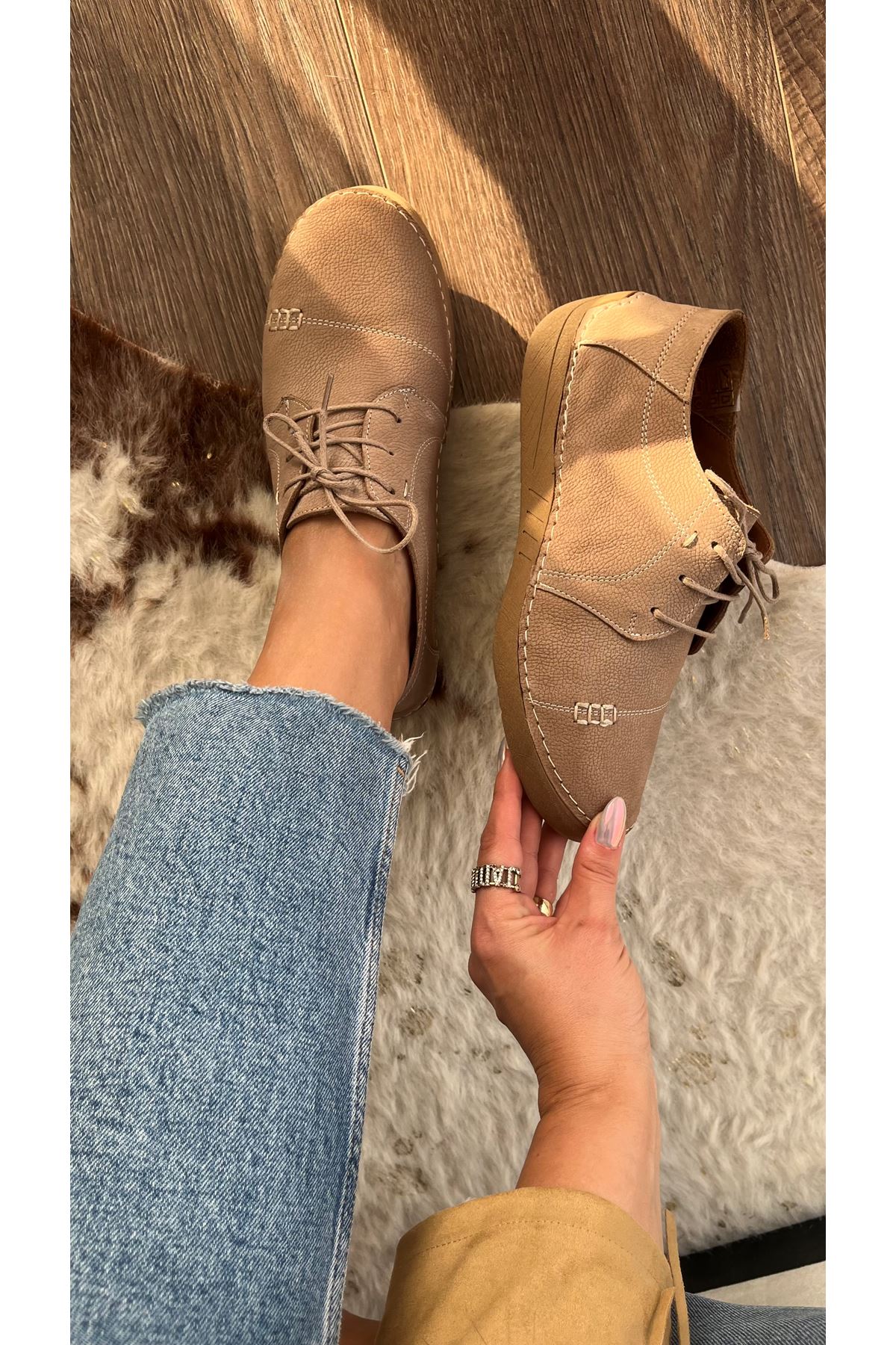 Gerçek Deri Nubuk Kadın Ayakkabı Bej Cotton