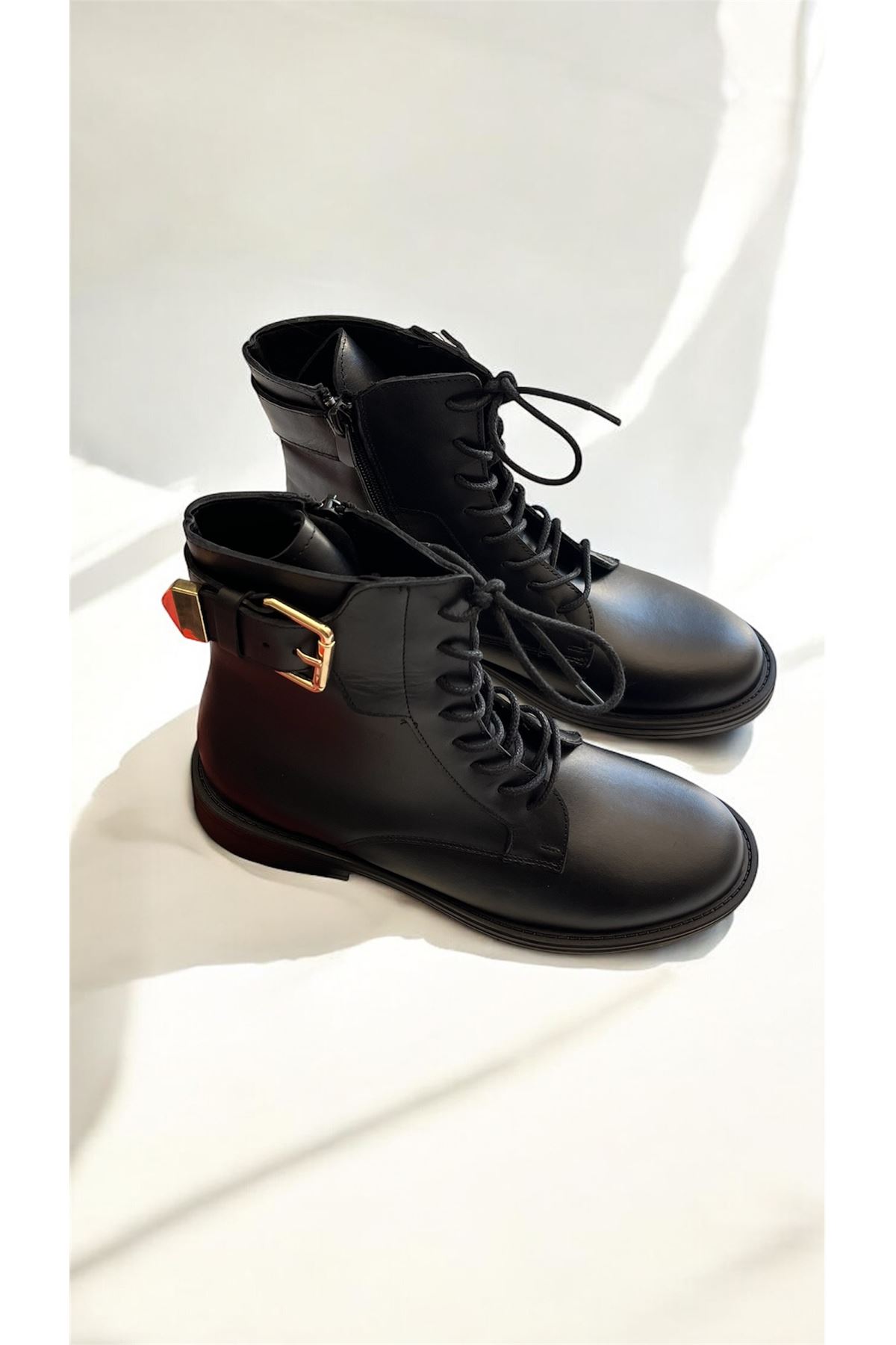 Gerçek Deri Tokalı Kadın Bot Siyah Joni