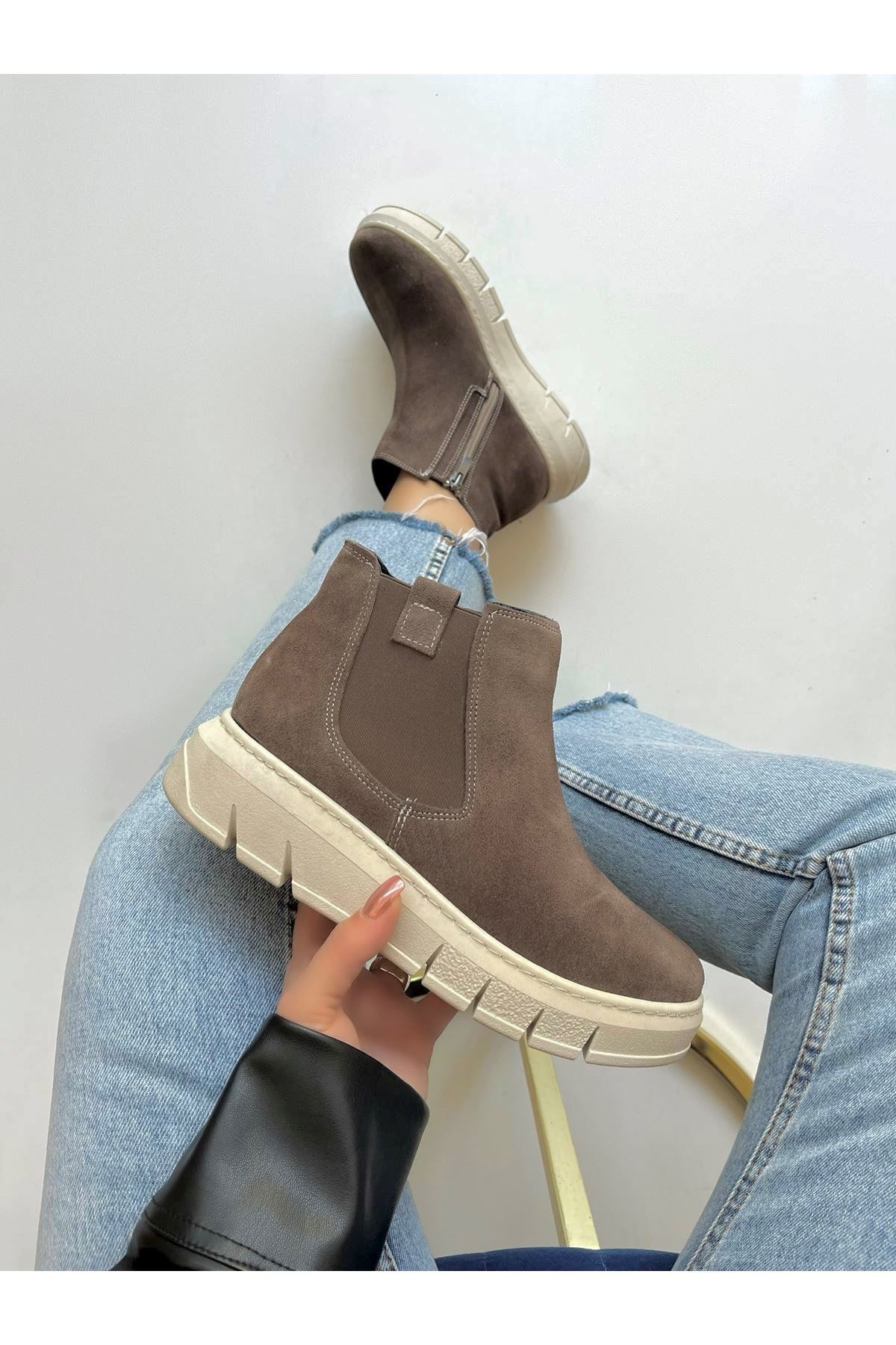 Gerçek Süet Vizon Taupe Kadın Spor Bot