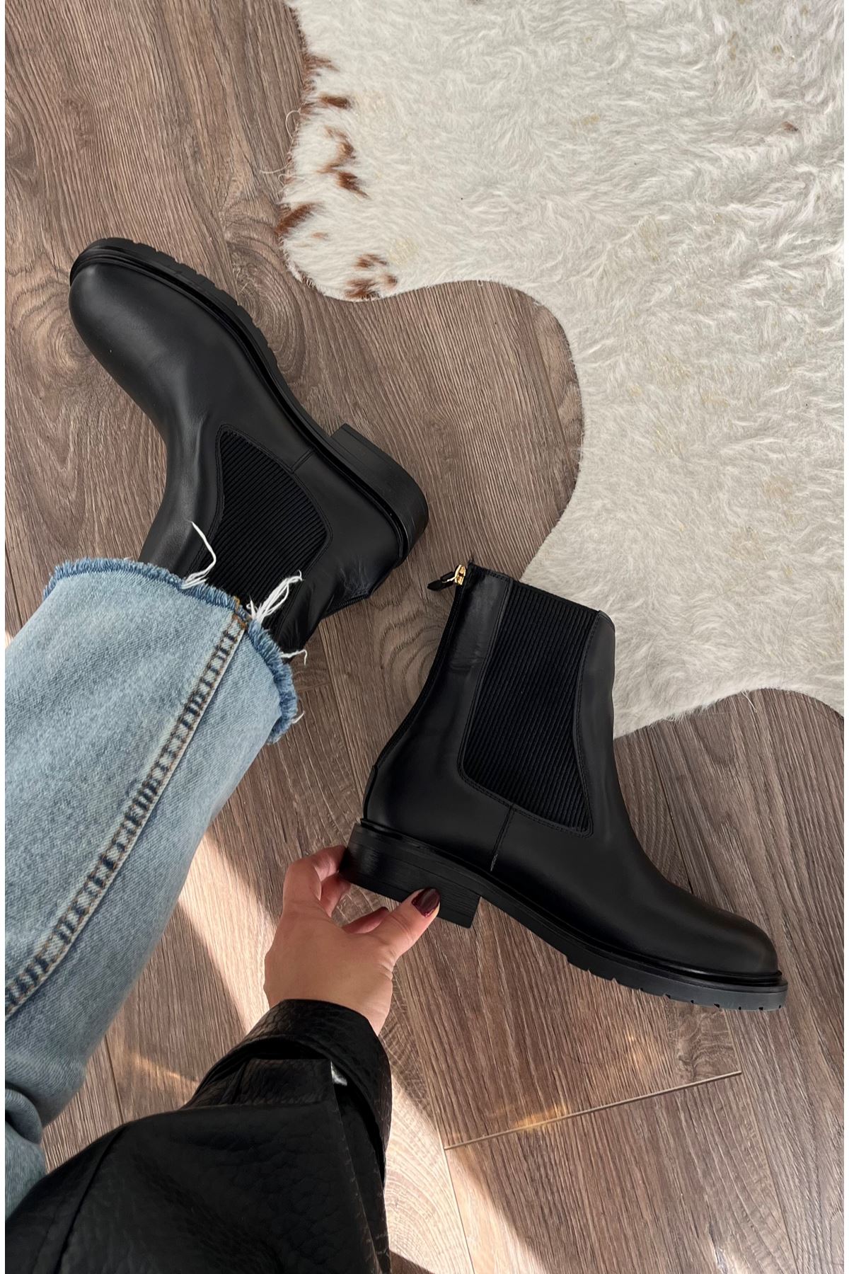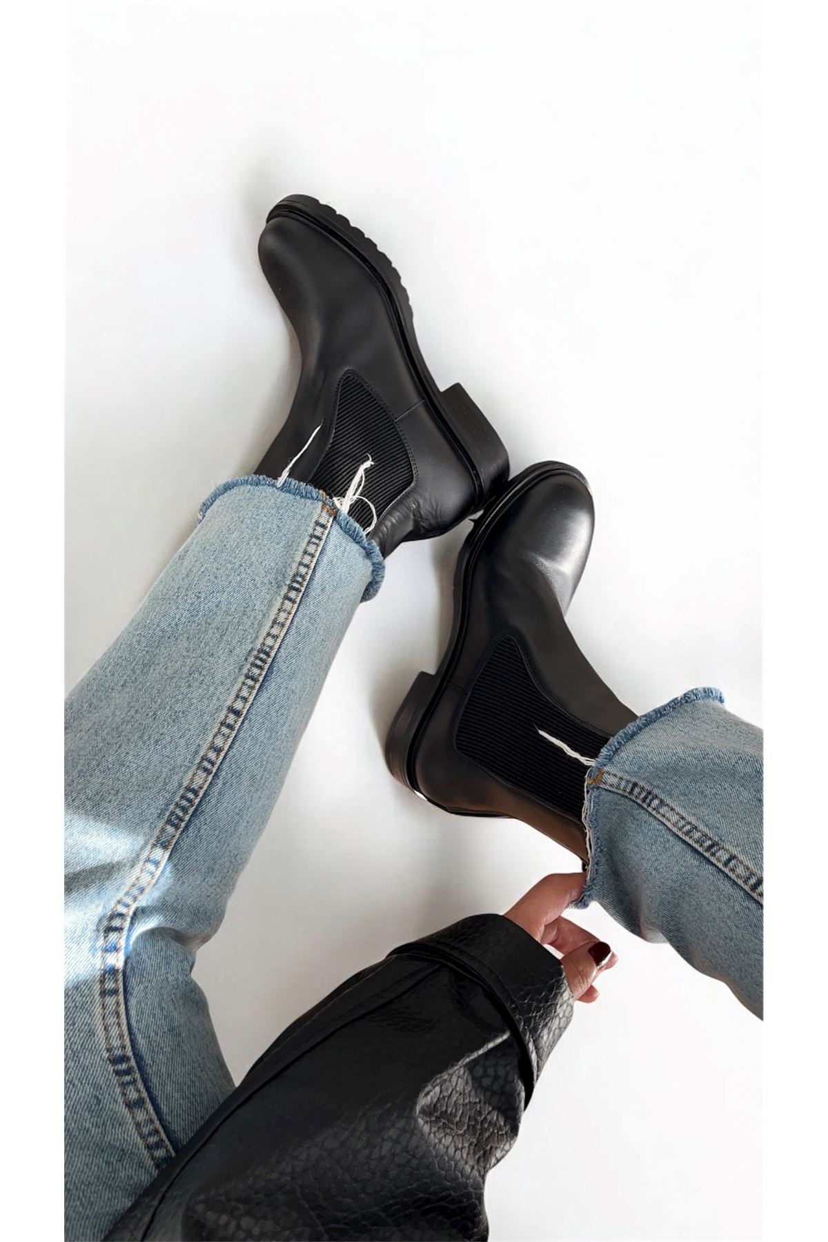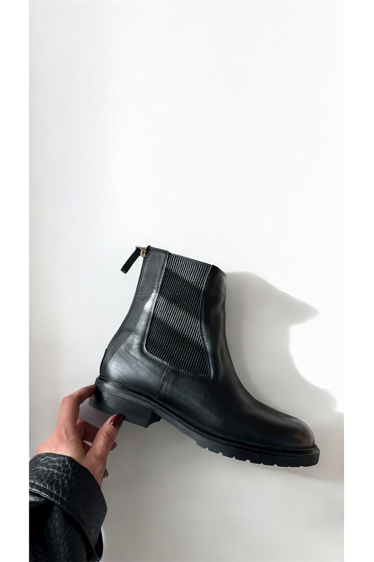 Gerçek Deri Arkadan Fermuarlı Kadın Bot Siyah Casual